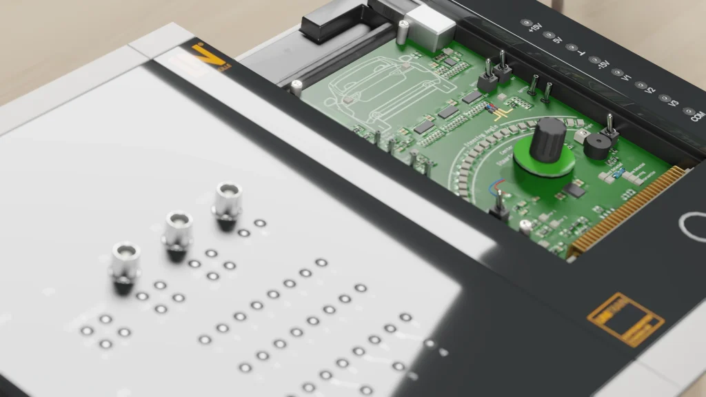 Lernende erfahren praxisnah, wie sie einen aktiven Fahrspurassistenten sicher in Betrieb nehmen, präzise kalibrieren und systematisch diagnostizieren. Dieses System ist ideal für die Ausbildung im Bereich moderner FAS in der Kraftfahrzeugmechatronik. Es qualifiziert Lernende für die Kalibrierung von Frontkameras nach Reparatur- oder Wartungsarbeiten und ermöglicht die Diagnose sowie die Fehlersuche an vernetzten Systemen im Fahrzeug.