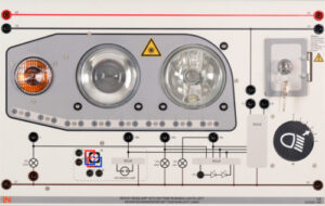 Erweitern Sie jede bestehende Beleuchtungswand mit CAN-Bus um ein modernes Beleuchtungskonzept der Frontscheinwerfer. Auf Grund des besonderen didaktischen Konzepts, können Sie nur mittels dieser Erweiterung die Themen Xenonlicht, LED-Licht sowie Tagfahrlicht in einem Trainingssystem fundiert erklären und praktisch untersuchen. Das Trainingssystem ermöglicht dem Auszubildenden die verschiedenen Beleuchtungskonzepte parallel zu untersuchen und so die Besonderheiten und Unterschiede praktisch zu ermitteln. Darüber hinaus ist ebenfalls die automatische Höhenverstellung für das Xenonlicht vorhanden.