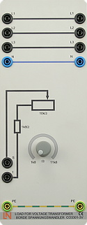 Die Bürde für Spannungswandler ist ein stufenlos verstellbarer Widerstand mit Vorwiderstand als Kurzschlussschutz. Er dient zur Aufnahme von Wandlerkennlinien und den daraus abzuleitenden Genauigkeitsklassen.