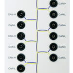 Das Modul „CAN-Verteiler“ ermöglicht Ihnen den einfachen und schnellen Aufbau eines kompletten CAN-Kommunikationsnetzwerks mit bis zu sechs Teilnehmern. Weiterhin besitzt das Modul spezielle Steckplätze für Abschlusswiderstände in 4mm-Ausführung. Somit können über den CAN-Verteiler sowohl Low- als auch High-Speed Signale übertragen werden.  An den CAN-Verteiler können verschiedene Geräte angeschlossen werden. So ist es zum Beispiel möglich, eine Verbindung zu einem Schaltinterface herzustellen, mit dem das Ansteuern der Fahrzeugbeleuchtung möglich ist. Des Weiteren können mehrere CAN/LIN-Monitore mit dem Modul verbunden werden und ergeben im Zusammenspiel mit der Ausstattung „ATS2“ ein interaktives CAN-Netzwerk, in der jeder Knoten von einem Auszubildenden individuell konfiguriert und gesteuert werden kann.