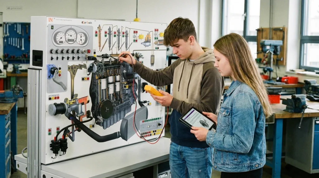 Mit dem CarTrain-System erwerben die Lernenden umfassende und praxisrelevante Kompetenzen in der Diagnose moderner Motormanagementsysteme. Sie entwickeln ein tiefes Verständnis für komplexe Zusammenhänge und lernen, systematisch Fehler zu finden und zu beheben – Fähigkeiten, die in der modernen Kraftfahrzeugtechnik unerlässlich sind.