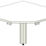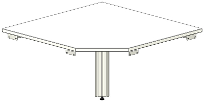 Tischplatte mit abgeschrägter Seite und hinterem Aluprofil-Stützfuß, zum Aufbau von Eckkombinationen im SybaPRO System für Labortische mit 900mm Tiefe.