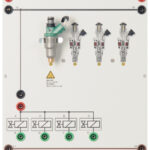 Die Moduleinheit „Einspritzventile“ ist Bestandteil des Trainingssystems „Modulares Motormanagement“. Durch die Symbiose von realen Komponenten sowie digital erstellten Grafiken wird der maximal mögliche Wissenstransfer des einzelnen Moduls voll ausgeschöpft. Der Auszubildende lernt einerseits das reale Aussehen sowie die reale Haptik des Bauteils kennen, andererseits kann er dieses reale Aussehen direkt mit dem dazugehörigen Schaltsymbol verknüpfen, was ihn maßgeblich beim Lesen und Verstehen von Schaltplänen unterstützt. Je nach Modul existiert neben dem Schaltsymbol ebenfalls noch eine 3D-Zeichnung, die die jeweilige Komponente im Detail zeigt. Da die 4mm-Sicherheitsbuchsen des Moduls dieselbe Farbkodierung wie das Steuergerät besitzen, ist einerseits die grundlegende Funktion des jeweiligen Anschlusses selbsterklärend, andererseits wird die Gefahr einer fehlerhaften Verkabelung minimiert. Für den Fall einer falschen Verkabelung besitzen alle Sensor- und Aktor-Module eine inhärente Sicherheitsbeschaltung, die sie gegen Kurzschlüsse absichert.