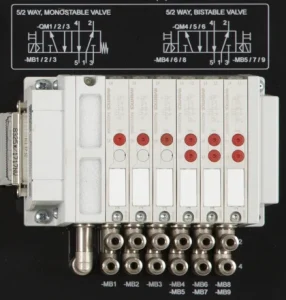 Der Einsatz einer kompakten Ventilinsel mit sowohl monostabilen als auch bistabilen 5/2-Wegeventilen spiegelt moderne Industriestandards wider. Lernende begreifen so den praktischen Unterschied zwischen Impuls- und Speicherverhalten in der Steuerungstechnik.