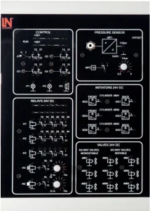 Das Board vereint Zylinder, Ventile, Sensoren, Relais und Bedienelemente auf einer kompakten Einheit. Dies minimiert Rüstzeiten und ermöglicht den direkten Fokus auf die logische Verknüpfung von Signalen und die physikalische Bewegung, ohne Platzprobleme auf dem Labortisch.