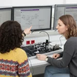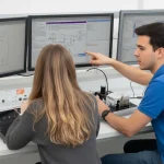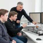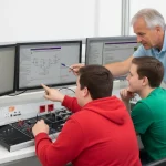 Lernende nutzen Multimedia-gestützte Lernkurse, um komplexe Steuerungsabläufe zu simulieren und ihr Verständnis für unsichtbare Prozesse zu vertiefen.