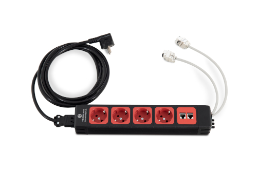 Energieleiste , 4x Schuko 230V, 2x RJ45 Cat VI (rot)