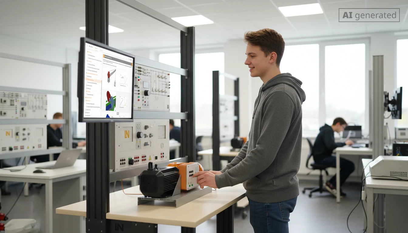 Lernende üben die präzise Steuerung der Drehzahl in industriellen Anwendungen, um Produktionsprozesse zu optimieren und Energie zu sparen.