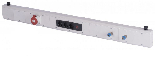 Funktionsleiste mit 3xSchuko 230V + Schalter, 1xCEE 400V, 2xDruckluft, 875x130x6