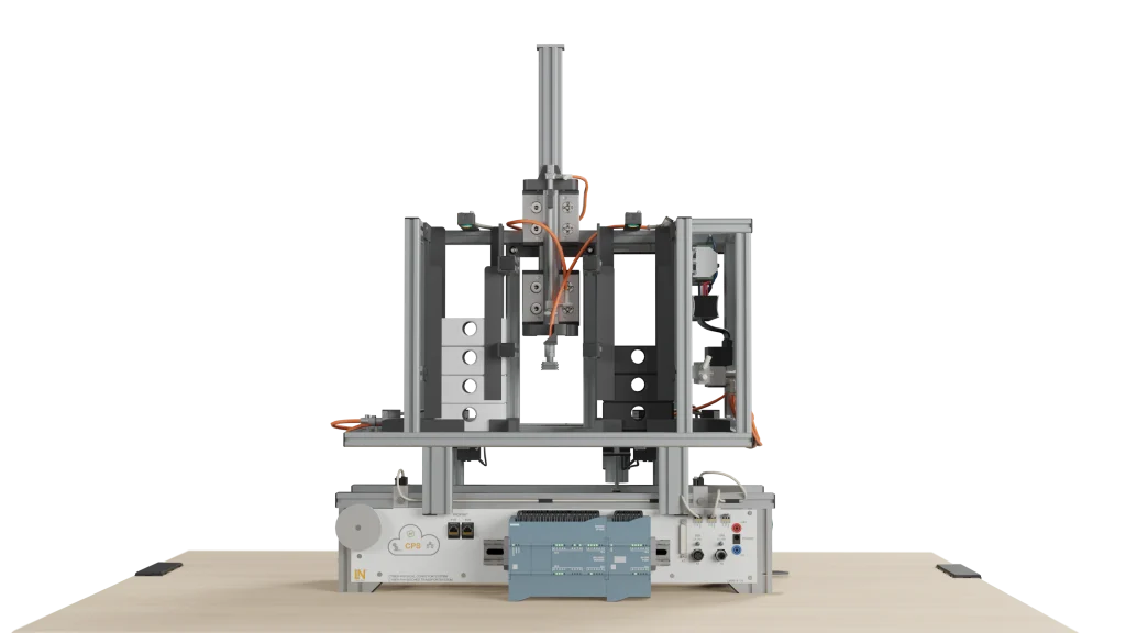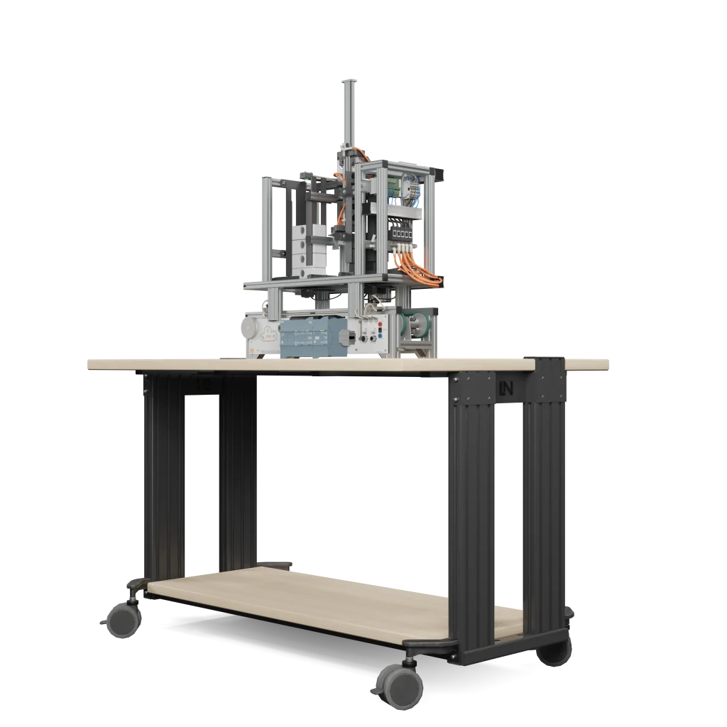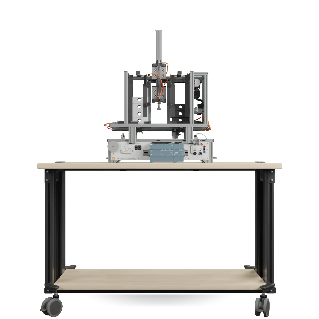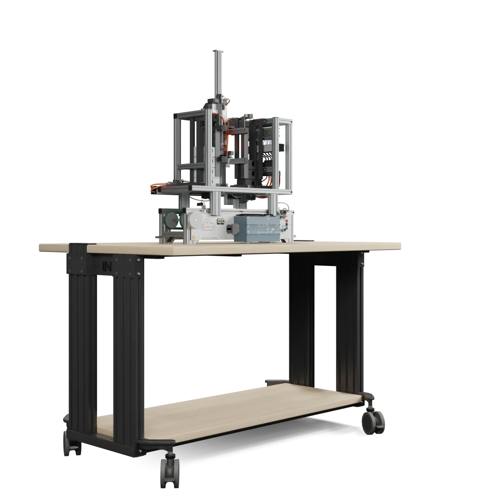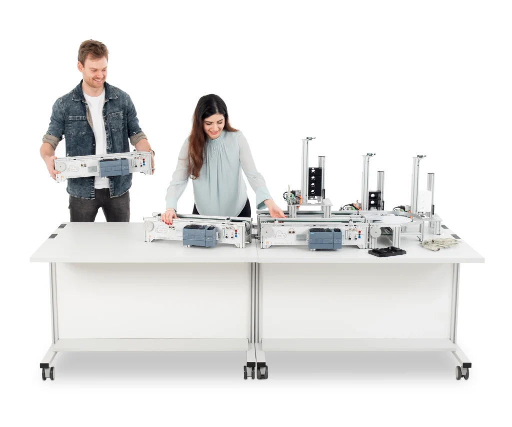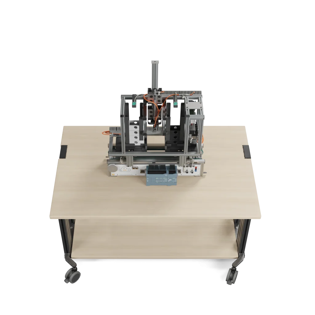 Lernende erstellen komplexe Ablaufsteuerungen, um pneumatische Achsen, Zylinder und Vakuumsauger in einer präzisen Reihenfolge anzusteuern. So realisieren sie einen vollständigen Montageprozess. Die Station integriert sich über eine standardisierte Schnittstelle nahtlos in cyberphysische Transportsysteme, was Ihnen eine schnelle und unkomplizierte Einrichtung der Lernumgebung ermöglicht.