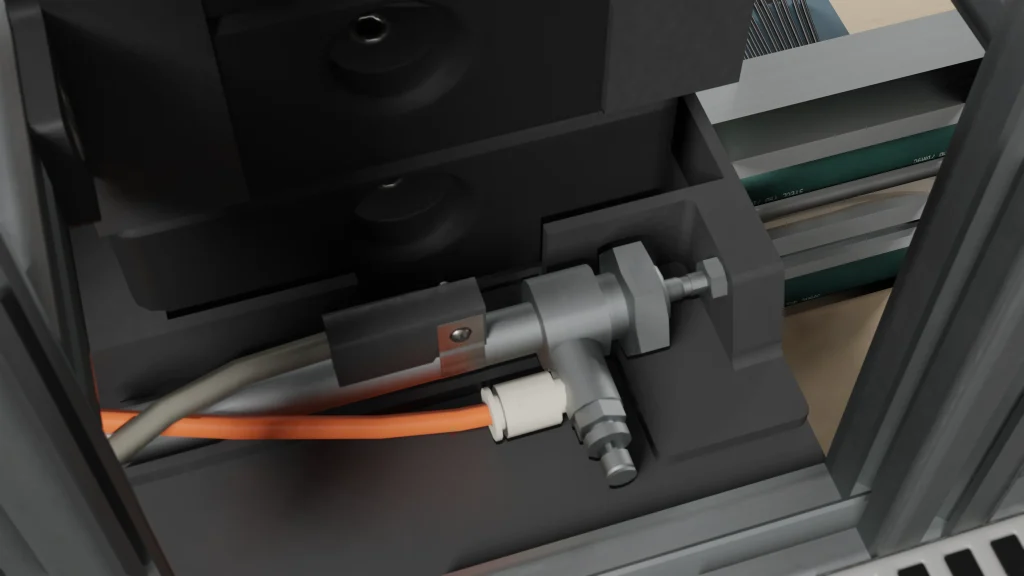 Dank der umfassenden Sensorik und Aktorik erlernen die Teilnehmenden die Ansteuerung industrieller Komponenten und deren korrekte Auswertung. Dazu gehören vier 4/2-Wege-Magnetventile, verschiedene Zylinderschalter für Endlagenabfragen, Lichtschranken zur Füllstandsüberwachung und Vakuumsauger. Zusätzlich sind IO-Link-Ultraschallsensoren für die analoge Füllstandsmessung integriert. Diese modernen Sensoren ermöglichen die Anbindung und Auswertung intelligenter Sensorik über den IO-Link-Standard – eine wichtige Kompetenz für die Industrie 4.0.