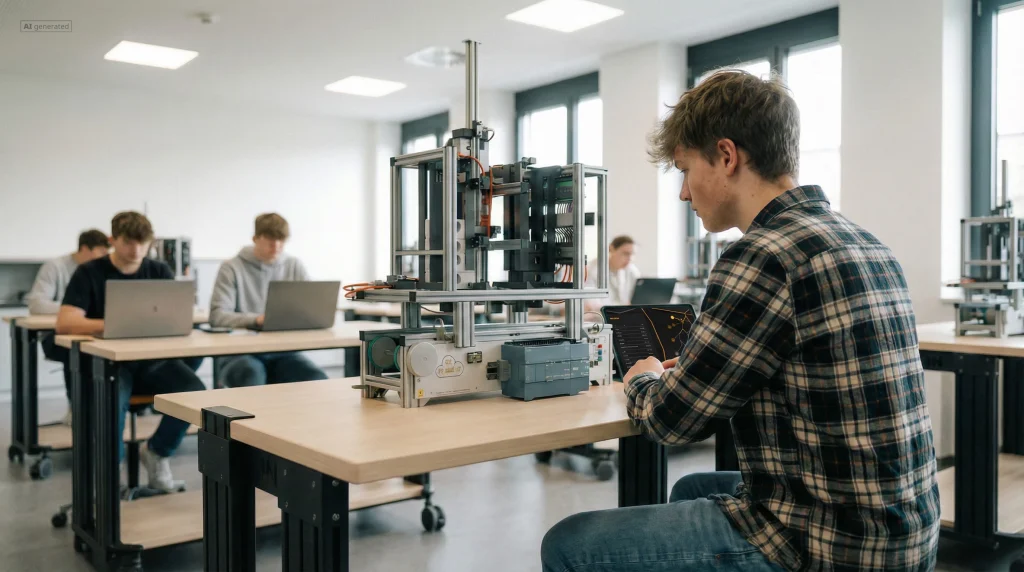 Mit der geführten Montage erwerben Lernende fundierte Kompetenzen in der Automatisierungstechnik. Unsere didaktisch aufbereiteten Lernziele stellen sicher, dass alle Teilnehmenden die entscheidenden Fähigkeiten für zukünftige Aufgaben in der Industrie entwickeln und komplexe Prozesse sicher beherrschen.