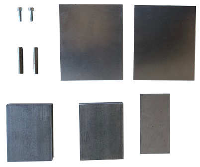 Halbzeuge für den Grundlagen Metalltechnik Kurs SO2803-3B besteht aus 10 x folgende Ausstattung: 2 x Blech 2 x 120 x 100 EN10130 1 x Blech 1 x 50 x 100 EN10130 2 x Flachstahl 70 x 12 x 90 EN10278 2 x Rundstahl 8 x 41 2 x Innensechskantschrauben M5 x 16 ISO4762