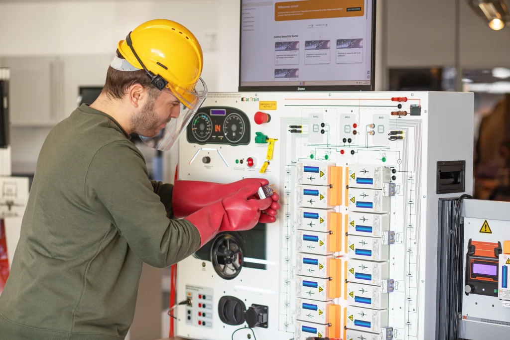 Die Reparatur von Hochvolt-Batterien wird zur entscheidenden Kompetenz in der modernen Kraftfahrzeugwerkstatt. Ein teurer Komplettaustausch lässt sich so vermeiden. Mit dem CarTrain System-qualifizieren Lernende sich gezielt für diese anspruchsvollen Aufgaben.