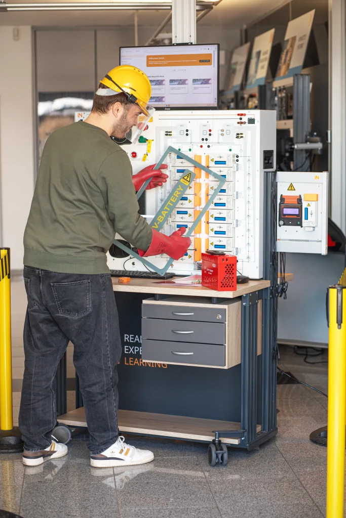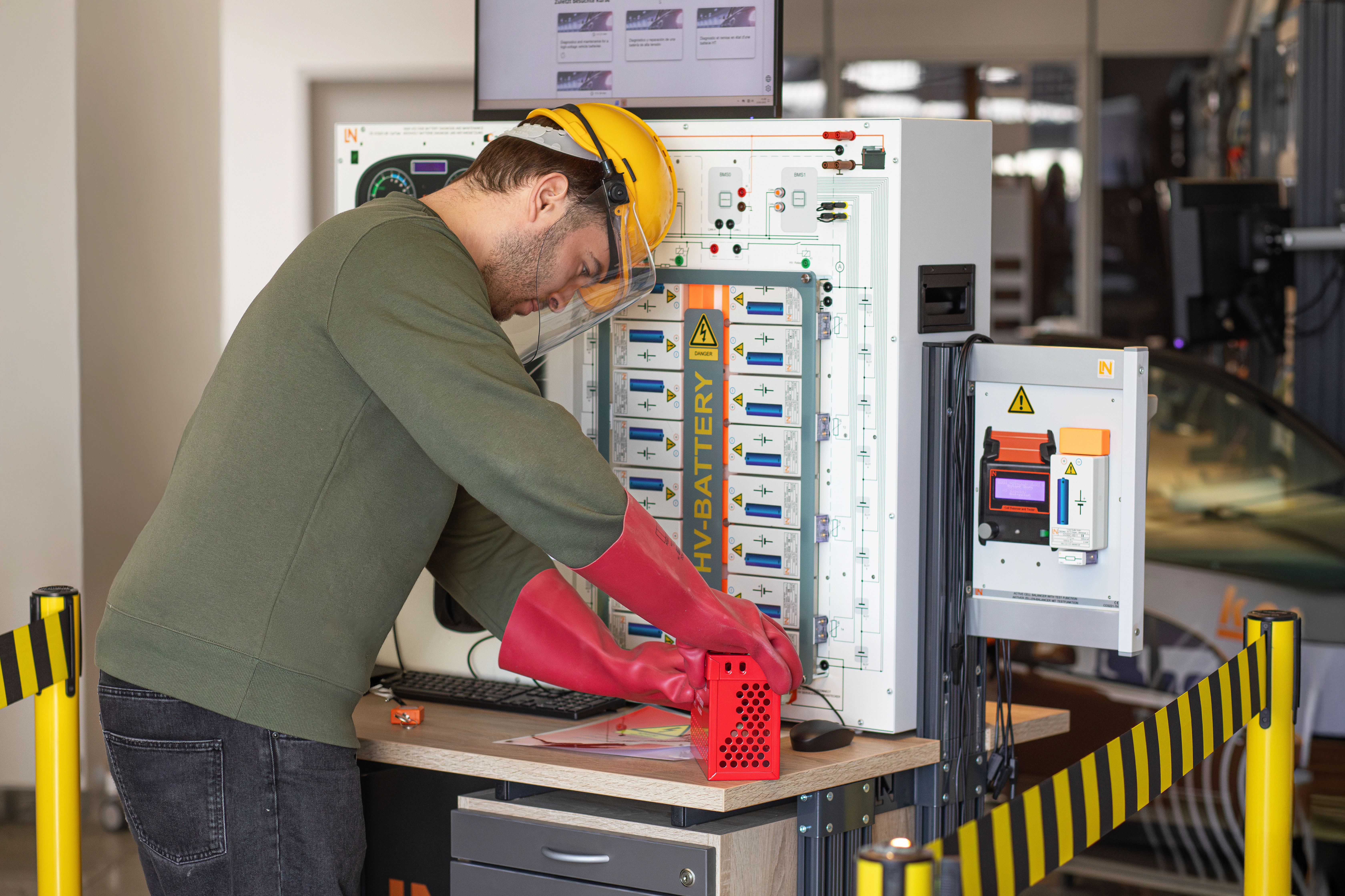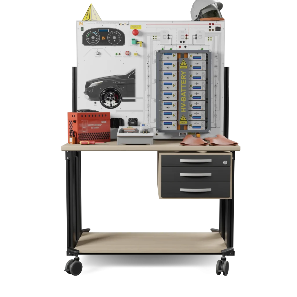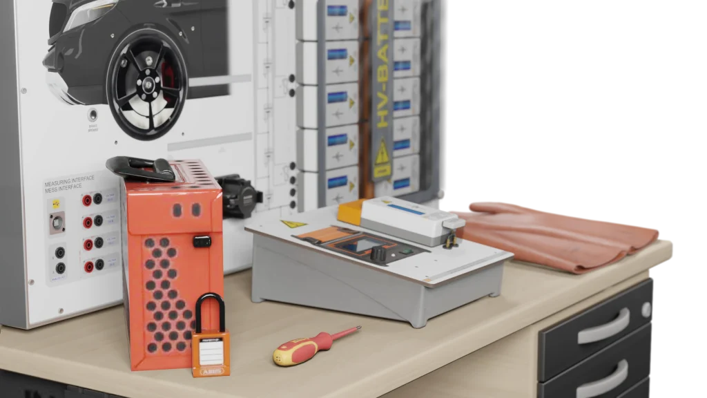 Das modulare Trainingssystem bildet eine reale, zerlegbare Hochvolt-Batterie mit einem vernetzten Batteriemanagementsystem (BMS) nach. Eine integrierte Fehlerschaltung ermöglicht Ihnen praxisnahe Diagnosen. Sie erwerben praktische Handlungskompetenzen, um Fehler bis auf Zell- und Sensorebene sicher zu diagnostizieren und die Instandsetzung durchzuführen.