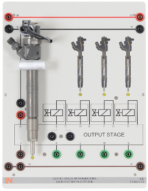 Die Moduleinheit „Injektoren“ ist Bestandteil des Trainingssystems „Modulares Motormanagement“. Durch die Symbiose von realen Komponenten sowie digital erstellten Grafiken wird der maximal mögliche Wissenstransfer des einzelnen Moduls voll ausgeschöpft. Der Auszubildende lernt einerseits das reale Aussehen sowie die reale Haptik des Bauteils kennen, andererseits kann er dieses reale Aussehen direkt mit dem dazugehörigen Schaltsymbol verknüpfen, was ihn maßgeblich beim Lesen und Verstehen von Schaltplänen unterstützt. Je nach Modul existiert neben dem Schaltsymbol ebenfalls noch eine 3D-Zeichnung, die die jeweilige Komponente im Detail zeigt. Da die 4mm-Sicherheitsbuchsen des Moduls dieselbe Farbkodierung wie das Steuergerät besitzen, ist einerseits die grundlegende Funktion des jeweiligen Anschlusses selbsterklärend, andererseits wird die Gefahr einer fehlerhaften Verkabelung minimiert. Für den Fall einer falschen Verkabelung besitzen alle Sensor- und Aktor-Module eine inhärente Sicherheitsbeschaltung, die sie gegen Kurzschlüsse absichert. Technische Highlights: Realer Common Rail – Injektor Darstellung des Injektors im Schnitt Darstellung der Einspritzreihenfolge eines 4-Zylinder-Motors Ansteuerung jedes einzelnen Injektors Schaltsymbol mit Messpunkten Kurzschlussfest Technische Details: Betriebsspannung: 12 V ?Abmessungen: 297 x 227 x 180 mm (HxBxT) Gewicht: 1,3 kg