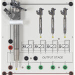 Die Moduleinheit „Injektoren“ ist Bestandteil des Trainingssystems „Modulares Motormanagement“. Durch die Symbiose von realen Komponenten sowie digital erstellten Grafiken wird der maximal mögliche Wissenstransfer des einzelnen Moduls voll ausgeschöpft. Der Auszubildende lernt einerseits das reale Aussehen sowie die reale Haptik des Bauteils kennen, andererseits kann er dieses reale Aussehen direkt mit dem dazugehörigen Schaltsymbol verknüpfen, was ihn maßgeblich beim Lesen und Verstehen von Schaltplänen unterstützt. Je nach Modul existiert neben dem Schaltsymbol ebenfalls noch eine 3D-Zeichnung, die die jeweilige Komponente im Detail zeigt. Da die 4mm-Sicherheitsbuchsen des Moduls dieselbe Farbkodierung wie das Steuergerät besitzen, ist einerseits die grundlegende Funktion des jeweiligen Anschlusses selbsterklärend, andererseits wird die Gefahr einer fehlerhaften Verkabelung minimiert. Für den Fall einer falschen Verkabelung besitzen alle Sensor- und Aktor-Module eine inhärente Sicherheitsbeschaltung, die sie gegen Kurzschlüsse absichert.