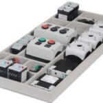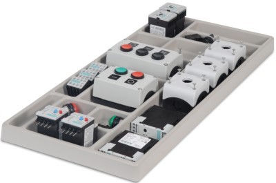 Mit dem handelsüblichen Installationsmaterial werden Last- und Steuerstromkreise von Automatisierungsanlagen realisiert. Je nach verwendeten Verdrahtungsmaterial werden verschiedene Installationsarten umgesetzt. Alle Installationsgeräte sind für Netzspannung zugelassen und entsprechen den DIN – Normen. Netzspannung: 3×230 V Installationsart: Schaltschrankinstallation Funktionselemente: 3 Hauptschütz 230 V 2 Zeitrelais anzugsverzögert 2 Drucktaster 1 Überstromrelais 1 Leuchtmelder rot 1 Leuchtmelder grün 1 Schalter Gewicht: 2,2 kg