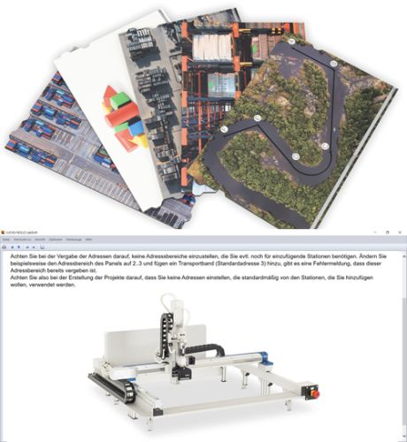 Die Versuchsanleitung bildet ein Interactive Lab Assistant Kurs. Dieser Multimediakurs führt Schritt für Schritt in die Thematik der Portalroboter. Grundlagen werden durch leicht verständliche Bilder vermittelt. Der Interactive Lab Assistant bildet zusammen mit dem Fragenteil eine umfangreiche Experimentierumgebung.