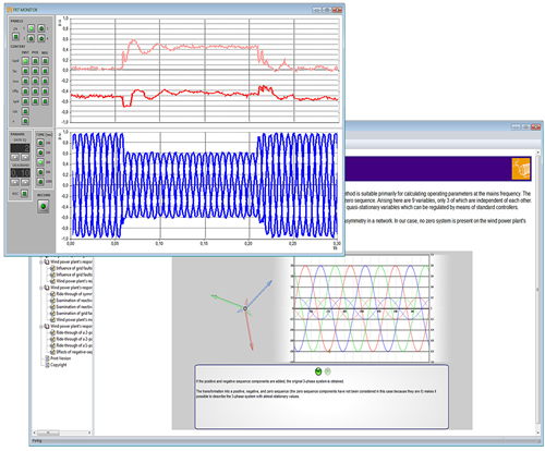 Die Versuchsanleitung bildet ein Interactive Lab Assistant Kurs. Dieser Multimediakurs führt Schritt für Schritt in die „Fault ride through“ Thematik moderner Windkraftanlagen ein. Besonderheiten: Interaktive Versuchsaufbauten Messwerte und Grafiken können per Drag und Drop in der Versuchsanleitung gespeichert werden Fragen mit Feedback und Auswertelogik zur Wissensstandkontrolle Druckdokument zum komfortablen Ausdruck der Versuchsanleitung mit Lösungen Labsoft-Browser, Kurssoftware und Software WindSim Die Software FRT übernimmt die Aufzeichnung und Visualisierung der Messwerte. Besonderheiten: Darstellung der Augenblickswerte Darstellung der Mit- und Gegensystemkomponenten Vorgabe von Sollwerten für Wirk- und Blindleistung Export der Grafiken und der Messwerte 32-Bit-Version für Windows Kursdauer: ca. 16 h