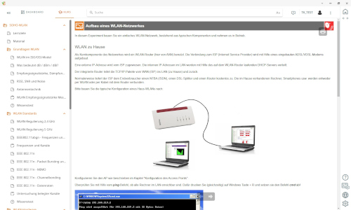 Multimediale Experimentiersoftware mit virtuellen Instrumenten, Anleitungen und Dokumentation der Ergebnisse zum Aufbau, Inbetriebnahme und Konfiguration eines Office-WLANs.