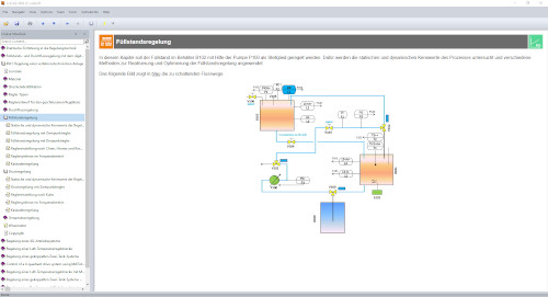 Die Versuchsanleitung bildet ein Interactive Lab Assistant Kurs. Dieser Multimediakurs führt Schritt für Schritt in die Thematik „Regelung einer verfahrenstechnischen Anlage“ ein. Physikalische Grundlagen werden durch leicht verständliche Animationen vermittelt. Der Interactive Lab Assistant bildet zusammen mit den virtuellen Instrumenten eine komfortable Experimentierumgebung.