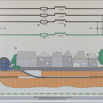Dreiphasige Nachbildung eines Hochspannungserdkabels mit unterschiedlichen Längen zur Messung verschiedener Betriebszustände (Leerlauf, Anpassung, Kurzschluss). Maßstabsfaktor 1/1000 für Strom und Spannung.
