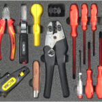 Schubladen-Werkzeugeinsatz Kälte/Klima-Technik 1 – VDE-Basiswerkzeuge, Satz bestehend aus 20 Teilen in zweifarbiger (schwarz/grau) Schaumeinlage in den Maßen 300x600mm,