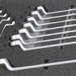 Schubladen-Werkzeugeinsatz Kfz-Technik 2 – Doppelringschlüssel-Satz, bestehend aus 14 Teilen in zweifarbiger Schaumeinlage (schwarz/grau) in den Maßen 300x600mm,