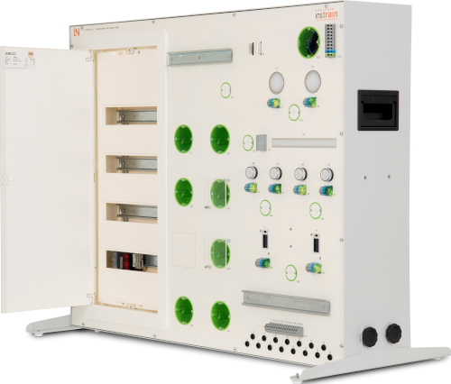 Der Gebäudesystemtrainer dient der Vermittlung theoretischer und praktischer Kenntnisse der Gebäudesystemtechnik. Als kompaktes, transportables Trainingssystem ist er sehr gut für die fachpraktische Projektarbeit geeignet. Neben den handwerklichen Installationsfertigkeiten werden auch die Programmierkenntnisse innerhalb einer Projektarbeit gefestigt. Das Modell kann mit verschiedenen Materialsätzen bestückt werden.