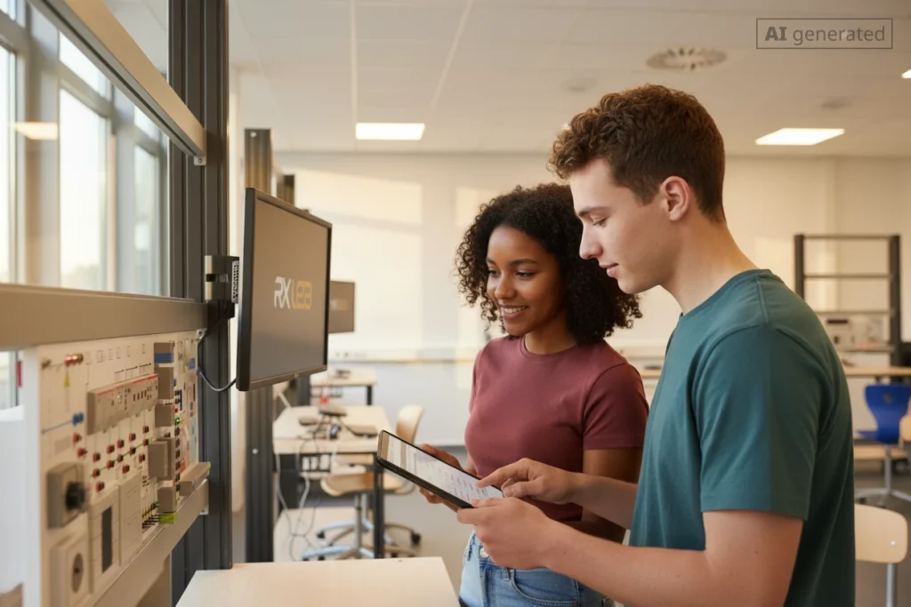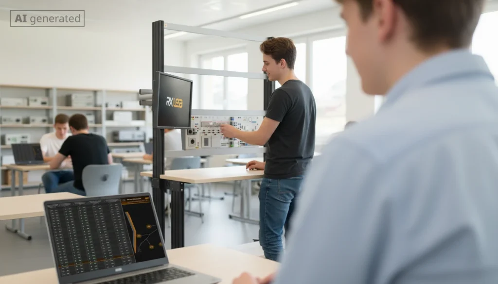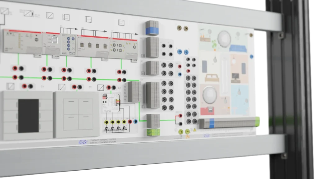 Mit unserer Lösung erlernen Ihre Teilnehmenden die Planung, Programmierung und Inbetriebnahme von KNX-Anlagen mit der originalen Branchensoftware ETS 6. Diese perfekte Vorbereitung ist entscheidend für den beruflichen Alltag. Sie arbeiten mit realen, lehrplanorientierten Projekten und setzen so direkte, anwendbare Kompetenzen um, statt nur Theorie zu vermitteln. Die integrierte All-in-One Hardware-Lösung mit zahlreichen Aktoren und Sensoren für Beleuchtung und Beschattung bildet eine komplette, fundierte Ausbildungsgrundlage in einem Gerät. Dies vereinfacht den Aufbau und ermöglicht einen maximalen Fokus auf die Lernziele.