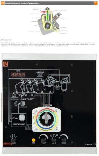 An diesem Trainingssystem unterrichten Sie das moderne Common-Rail-Einspritzsystem. Typische Einspritzdrücke, -verläufe und -mengen erlernt der Auszubildende an diesem System im selbstbestimmten Tempo. Um die gesamte Vielfalt der am Markt verfügbaren Systeme abzudecken, kann er zwischen verschiedenen Injektortypen umschalten. So deckt das System das Thema in vollem Umfang ab. Lerninhalte Anforderungen an die Dieseleinspritzsysteme Verschiedene Bauarten von Dieseleinspritzsystemen Aufbau und Funktion des Common-Rail-Systems Fehlersuche an Common-Rail-Systemen Einspritzverhalten: elektromagnetische- und Piezoinjektoren Nieder- und Hochdruckkreislauf Ablauf einer elektrischen Prüfung von Injektoren Hydraulik im Common-Rail-System kennenlernen Kursdauer ca. 10 h