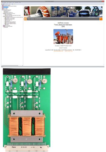 1 Experimentierkarte Dreiphasentransformatoren, didaktischer Transformator mit 12 Wicklungen und Abgriffen zur Untersuchung von ein- und dreiphasigen Schaltungen, dreiphasige Last schaltbar in Stern- und Dreieckschaltung