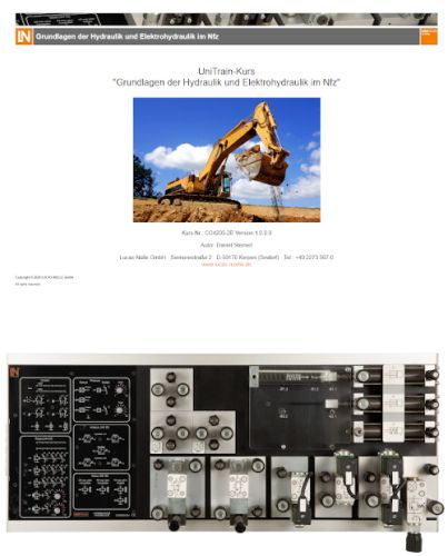 Diese Vielzahl an Funktionen verlangt von Servicewerkstattpersonal ein fundiertes und breites Wissen über die Grundlagen und die verschiedenen Anwendungen der Hydraulik. Daher hat die Firma Lucas-Nülle ein Trainingssystem entwickelt, welches ein praxisnahes Lernen ermöglicht und Ihnen die geforderten Grundlagen einfach und verständlich vermittelt. Der Kurs vermittelt das grundlegende Wissen zur Hydraulik. Anhand vieler erprobter Experimente werden die Funktionsweise und der Aufbau von hydraulischen Steuerungen anschaulich dargestellt.