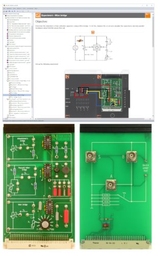 Lieferumfang: 1 Experimentierkarte mit abstimmbaren Wheatstone-, Maxwell-Wien- und Wien-Messbrücke 1 Experimentierkarte LCR Messgerät Aufbewahrungskoffer Labsoft-Browser und Kurssoftware Lerninhalte: Ausschlagverfahren von Abgleichverfahren unterscheiden können Messprinzip von Brückenschaltungen erklären können Widerstände und Impedanzen messen können mit Hilfe einer Wheatstone Brücke Maxwell-Wien Brücke anwenden können Kapazitätsmessungen mit einer Wien Brücke durchführen Impedanzmessverfahren kennen lernen und anwenden RLC-Messungen durchführen und besten Bereich auswählen Kursdauer: ca. 3 h Zusätzliche Virtuelle Instrumente in LabSoft Messtechnik Differenzverstärker Kennlinienschreiber Temperaturmessgerät Binär-Encoder Resolver Hall-Encoder Dreheisenmessgerät Stromzähler RLC Messgerät Messbrückenabgleich