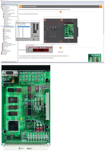 Lieferumfang: 1 Experimentierkarte, 32 Bit CPU MC68332, Emulator für Intel 8085 Mikroprozessor und externem Zugriff auf Adress-, Datenbus und Ports, LED Anzeige der Logikpegel auf Adress-, Daten-, Steuerbus und Port, Plexiglasabdeckung Serielle Schnittstelle RS 232 zum Anschluss externer Komponenten 40-polige Erweiterungsschnittstelle zum freien Zugriff auf Adress-, Steuer-, und Datenbus Aufbewahrungskoffer Labsoft-Browser und Kurssoftware Lerninhalte: Kennenlernen der Architektur eines Mikrocomputers Erklären der Funktionsweise eines Microprozessors und seiner Komponenten (ALU, Register, Stack, Befehlsdecoder, Programmzähler) Identifizieren der Hardwarekomponenten auf der Experimentierkarte Kennenlernen des Aufbaus des Intel 8085 Kennenlernen des Speichersystems eines Mikroprozessors Kennenlernen der verschiedenen Busse eines Mikrocomputers Auslesen von Daten auf Adress-, Steuer- und Datenbus Den Befehlssatz der CPU kennen lernen Die Programmabläufe für einfache Rechenoperationen beschreiben können Aufnahme und Analyse einzelner Programmabläufe Unterschiede zwischen linearen und verzweigten Programmen erklären können Programmieren eigener Assemblerprogramme Kursdauer: ca. 5 h     Zusätzliche Virtuelle Instrumente in LabSoft Mikrocomputertechnik Programmcode-Editor Debugger Kombinierter 16 Bit Logik-Signalgenerator und -Analysator, Taktfrequenz 1 Hz bis 10 kHz, beliebige Funktionen einstellbar, Funktionsbibliothek, interne und externe Triggermöglichkeit