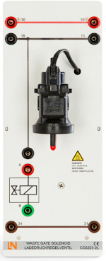 Die Moduleinheit „Ladedruckregelventil“ ist Bestandteil des Trainingssystems „Modulares Motormanagement“. Durch die Symbiose von realen Komponenten sowie digital erstellten Grafiken wird der maximal mögliche Wissenstransfer des einzelnen Moduls voll ausgeschöpft. Der Auszubildende lernt einerseits das reale Aussehen sowie die reale Haptik des Bauteils kennen, andererseits kann er dieses reale Aussehen direkt mit dem dazugehörigen Schaltsymbol verknüpfen, was ihn maßgeblich beim Lesen und Verstehen von Schaltplänen unterstützt. Je nach Modul existiert neben dem Schaltsymbol ebenfalls noch eine 3D-Zeichnung, die die jeweilige Komponente im Detail zeigt. Da die 4mm-Sicherheitsbuchsen des Moduls dieselbe Farbkodierung wie das Steuergerät besitzen, ist einerseits die grundlegende Funktion des jeweiligen Anschlusses selbsterklärend, andererseits wird die Gefahr einer fehlerhaften Verkabelung minimiert. Für den Fall einer falschen Verkabelung besitzen alle Sensor- und Aktor-Module eine inhärente Sicherheitsbeschaltung, die sie gegen Kurzschlüsse absichert.
