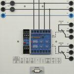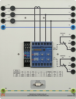 Lehrplatte mit einphasigen, richtungsabhängigen Leistungsrelais (ANSI 32 und 37). Das Gerät ist mit einer Software zum Selbsttest ausgerüstet. Die Parametrierung des Relais kann wahlweise von Hand oder mit einem PC über die integrierte RS485 Schnittstelle erfolgen. Nennspannung: 100V, 110V, 230V, 400V Nennfrequenz: 35-78Hz Leistungsaufnahme: im Spannungspfad: 1VA im Strompfad: 0,075 VA bei IN = 1A, 0,1VA bei In= 5A Arbeitsbereich der Leistungserfassung: für den Spannungspfad: 40….130% UN für den Strompfad: 0…120% IN Thermische Belastbarkeit: für den Spannungspfad: 520V AC für den Strompfad: 4x IN Ausgangsrelais: Einschaltstrom: 20A Nennstrom: 5A Max. Schaltleistung: 1250VA AC/120W DC ohmisch 500VA AC/75W DC induktiv Einstellbereiche: PR > 1…. 30% PN P> 1….120% PN tPr 0….10s/0…100s; tP 0….10s/0…100s LED-Anzeigen: „ON“ für Betriebsbereitschaft P Anregung (blinkend) P> und Pr> Anregung (Dauerlicht) Bedienelemente: Taster „TEST“ = Testauslösung des Gerätes 6 Potentiometer zum Einstellen des Auslösebereiches und der Abschaltzeit 8 DIP-Schalter zum Festlegen der jeweiligen Nennwerte Die integrierte Schnittstelle RS 485 ist für die Parametrierung von Schutzrelais geeignet. Sie erfasst und überträgt Werte vom Relais zum PC und zurück. Durch eine optische Übertragung der Signale wird eine galvanische Trennung gewährleistet. Anzeige der Schnittstelle: 1. LED grün = Betriebsanzeige 2. LED grün = Datenübertragung Ein- und Ausgänge: 4mm-Sicherheitsbuchsen Abmessungen: 297 x 228 x 125mm (HxBxT) Gewicht: 1,0kg