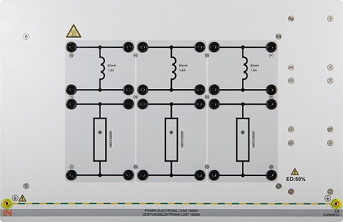Die Last eignet sich als universelle Belastung für alle Leistungselektronikversuche. Sie beinhaltet Widerstände und Induktivitäten. Stromintensität und -richtung wird über LEDs angezeigt. Die Last besitzt einen selbstrückstellenden Überlastschutz. Ohmsche Last: 3 Einzelwiderstände 180 Ohm, 350 W mit Indikatoren für Stromrichtung und -intensität, abgesichert durch selbstrückstellenden Überlastschutz Induktive Last: 3x 80 mH, 1,5A, abgesichert durch selbstrückstellenden Überlastschutz Abmessungen: 297 x 460 x 260 mm (HxBxT) Gewicht: 14,5 kg