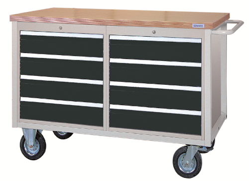 Mobile Werkbank SybaWork, 1200x750x995mm (BHT), 8 (2×4) Schubladen, Platte 40mm