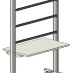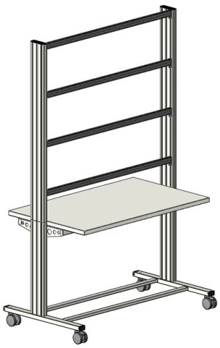 Hochwertiger, fahrbarer Experimentier- und Demostand der SybaPro Reihe mit Aluprofil-Tischbeinen kompatibel zu allen An- und Ausbauteilen des SybaPro Systems.