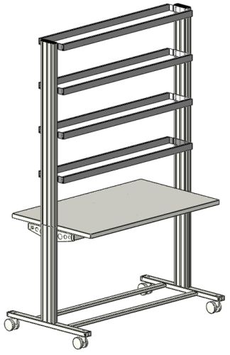 Hochwertiger, fahrbarer Experimentier- und Demostand der SybaPRO Reihe mit Aluprofil-Tischbeinen, kompatibel zu allen An- und Ausbauteile des SybaPRO Systems. Der von zwei Seiten benutzbare Experimentierstand kann gleichzeitig von Vorder- und Rückseite mit Wechsellochblechwänden und / oder Experimentierplatten im A4 Format bestückt werden und ist damit besonders für Montage- oder Projektübungen geeignet. Weiterhin besitzt der Versuchstand unterhalb der Tischplatte eine 5-fach Steckdosenleiste.