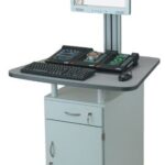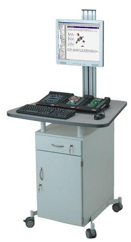 Mobiler Experimentierstand mit PC-Unterschrank zum Experimentieren und Demonstrieren im Stehen. Dieser Experimentierstand ist sehr gut geeignet zum Arbeiten mit dem UniTrain Lehrsystem, kann aber auch als mobiler PC-Arbeitsplatz bei anderen Experimentierplätzen verwendet werden.