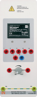 Motorvollschutz mit PTC-Auslösegerät und einem Motortemperatursimulator. Bei hochohmigen PTC wird über den Relaisausgang das externe Motorschütz abgeschaltet.