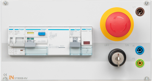 Das hochwertige und kompakte Lucas-Nülle Netzfeld dient zur schaltbaren Spannungsversorgung und zur Absicherung der Experimentierspannungsversorgung (230V) in Tischaufbauten/Energiekanälen.