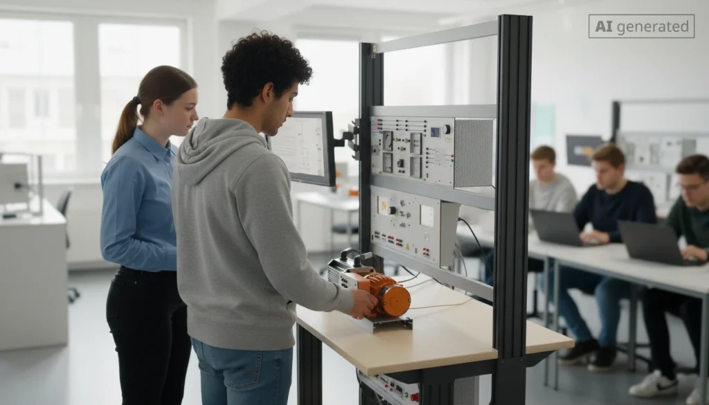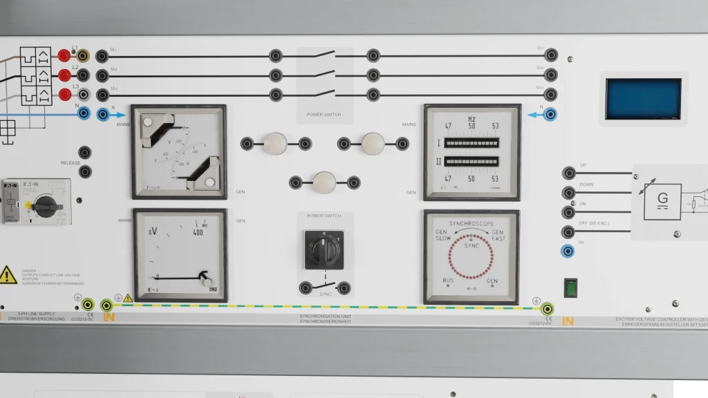 Erleben Sie den vollständigen Workflow von der Synchronisation bis zur Leistungsregelung am Netz. Dieses didaktische System bildet eine komplette Generatoreinheit realitätsnah nach.