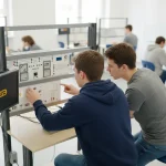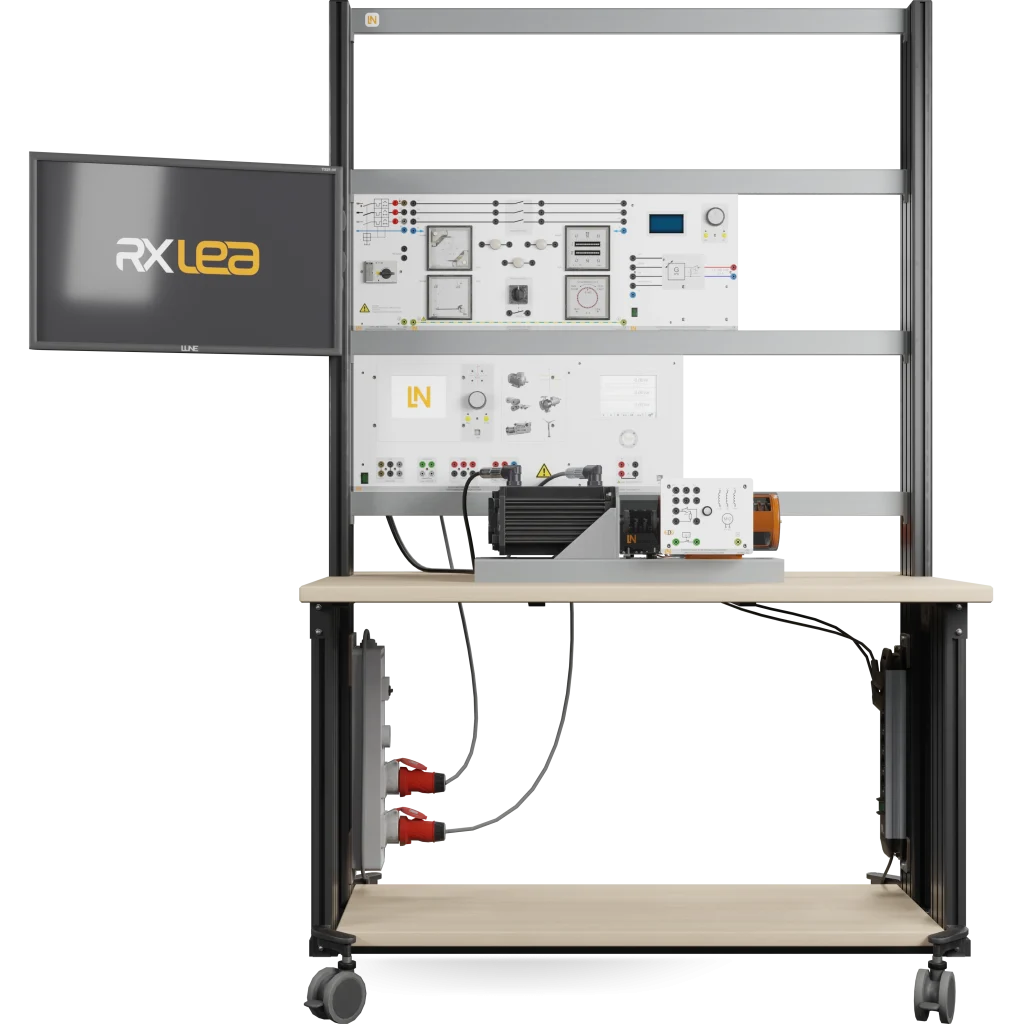 Unser PanelTrain-System EEM52PT-300W vermittelt Ihren Lernenden die praktischen Fähigkeiten: Stellen Sie diese Bedingungen mit verschiedenen klassischen und modernen Verfahren sicher her. Bestimmen Sie den Synchronisierzeitpunkt exakt. Mit der kompletten Fachpraxis-Ausstattung erlernen die Schülerinnen, Schüler und Auszubildenden die manuelle Netzsynchronisation eines Synchrongenerators und den Betrieb am Netz mit Wirk- und Blindleistungssteuerung. Ihre Teilnehmenden profitieren von einem systematischen Vergleich von vier industrieüblichen Synchronisierverfahren.