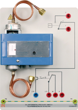 zum Schutz gegen unzulässigen Druck am Kühlkompressor. Der eingebaute Verzögerungsschalter verhindert ein Abschalten bei kurzzeitigem Druckabfall. Öldifferenzdruckschalter Typ P28 DP-9680 Zeitrelais, Wechsler, 230V Relais, Wechsler, 230V Ein- und Ausgänge: 4mm Sicherheitsbuchsen Abmessungen: 297 x 228 x 60mm Gewicht: 1,3kg