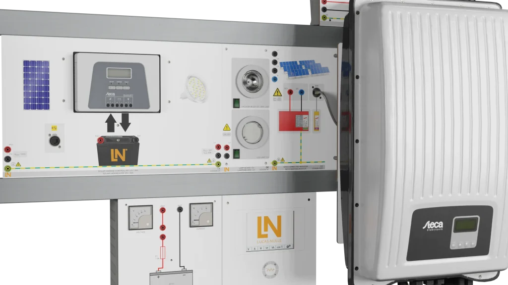 Photovoltaik-Inselanlagen sind eine Schlüsseltechnologie für Orte ohne Zugang zum öffentlichen Stromnetz. Dieses Trainingssystem von Lucas-Nülle ermöglicht Lernenden, den gesamten Engineering-Prozess von der Analyse der Solareinstrahlung bis zur Auslegung des passenden Batteriespeichers praxisnah zu erleben. Sie lernen, wie sie autarke Stromversorgungssysteme für Ferienhäuser, Messstationen oder mobile Anwendungen planen, dimensionieren und in Betrieb nehmen.