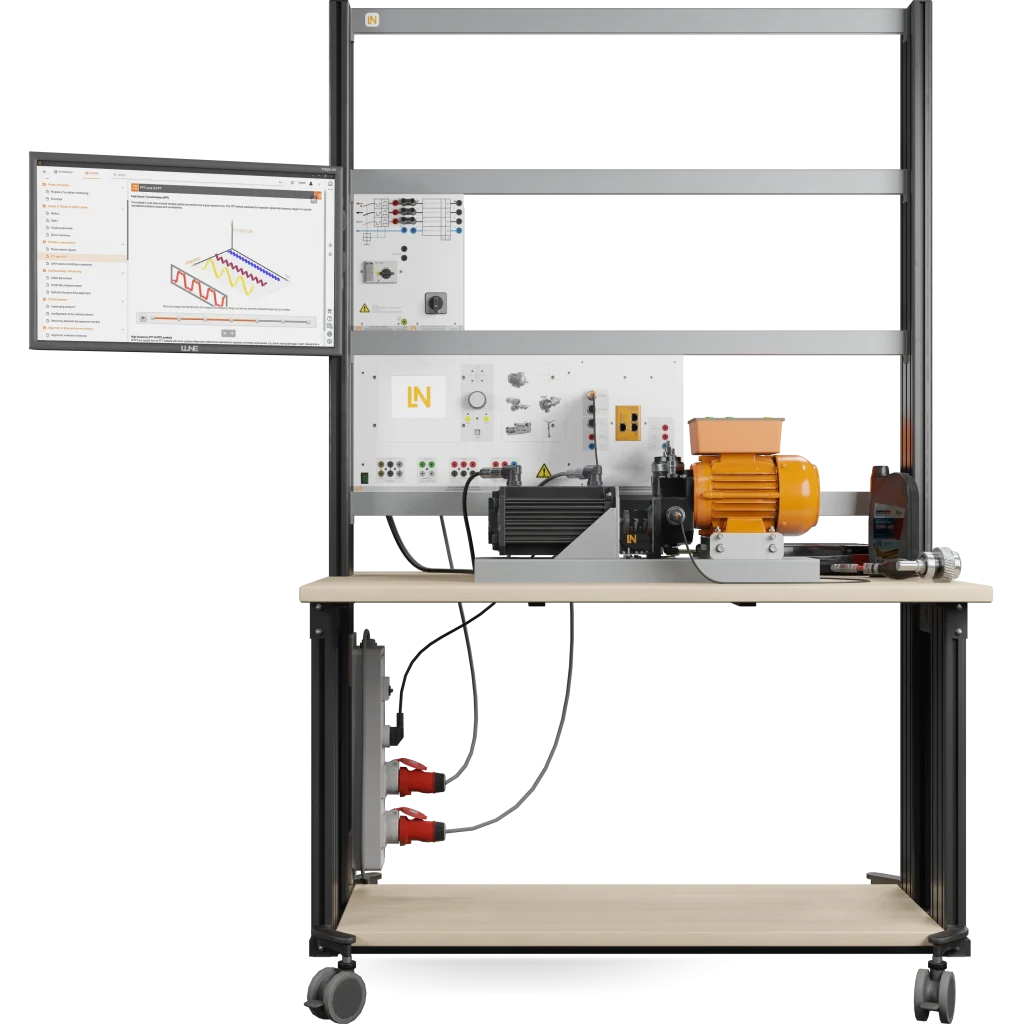 Condition Monitoring ermöglicht die Früherkennung von Maschinenfehlern. Durch die Echtzeit-Datenerfassung reduzieren sich ungeplante Stillstandzeiten erheblich. Unser System befähigt Lernende, typische mechanische Fehlerbilder wie Unwuchten, Ausrichtfehler, Lagerschäden und Getriebeschäden präzise zu identifizieren. Dafür nutzen sie die leistungsstarke Schwingungsanalyse.